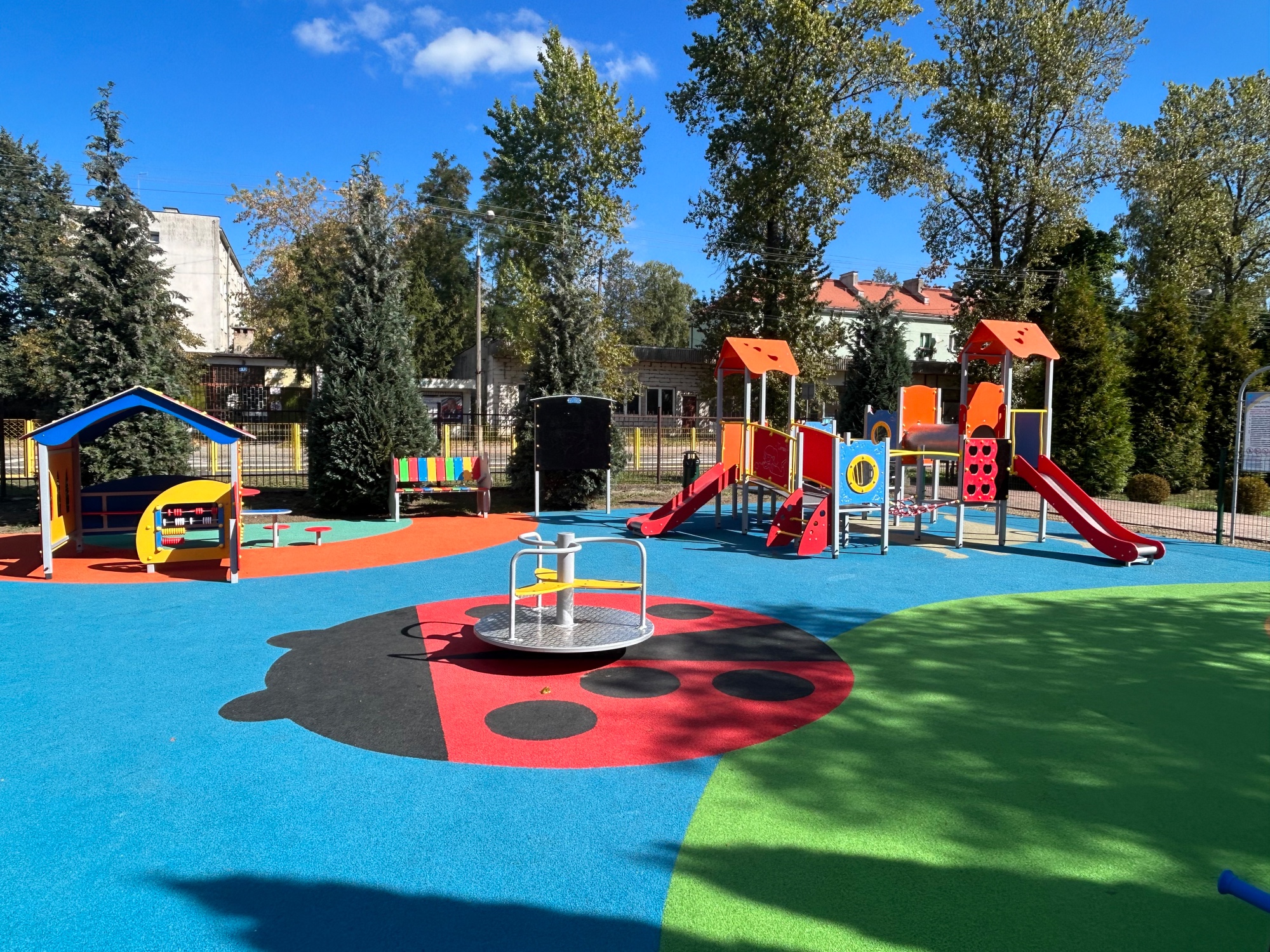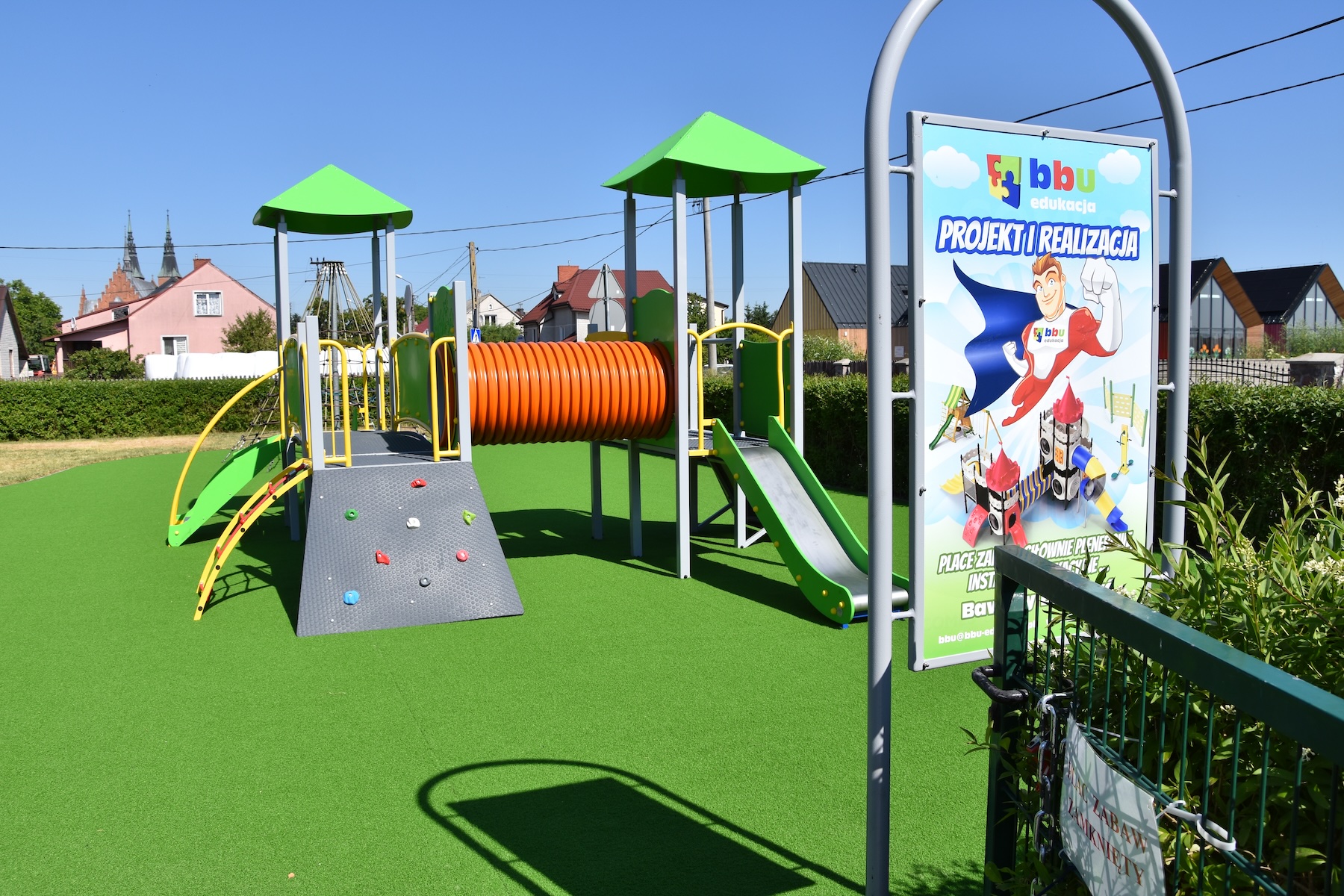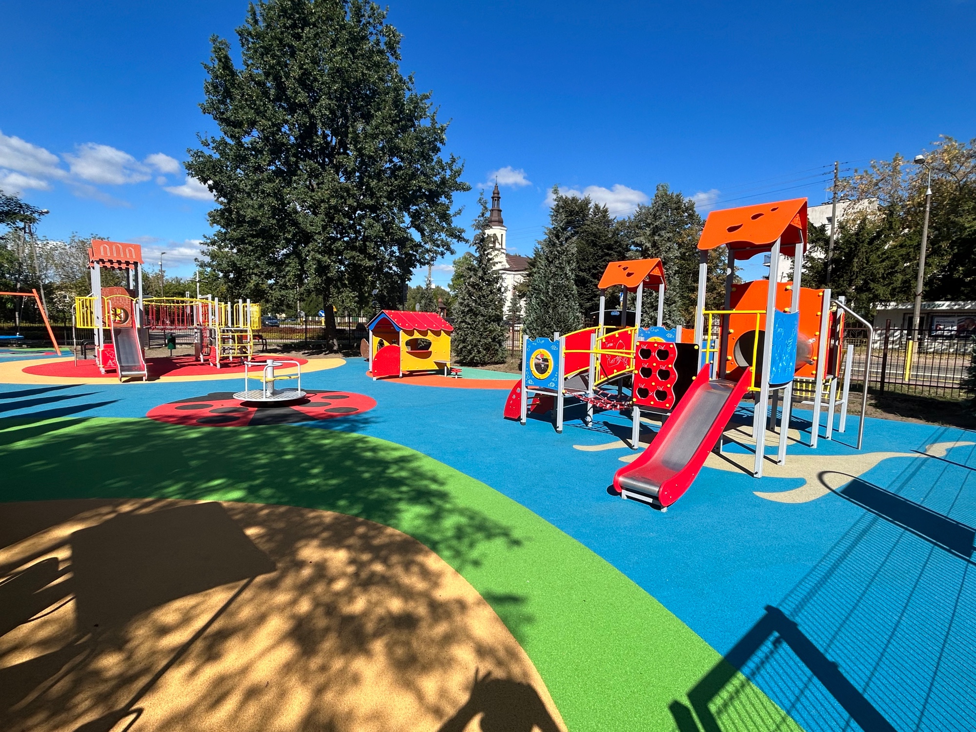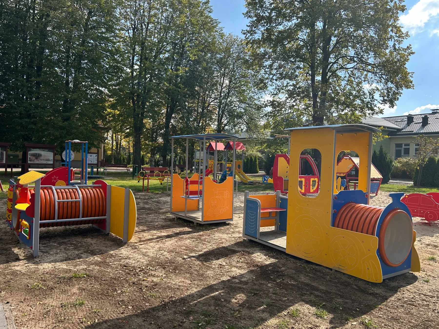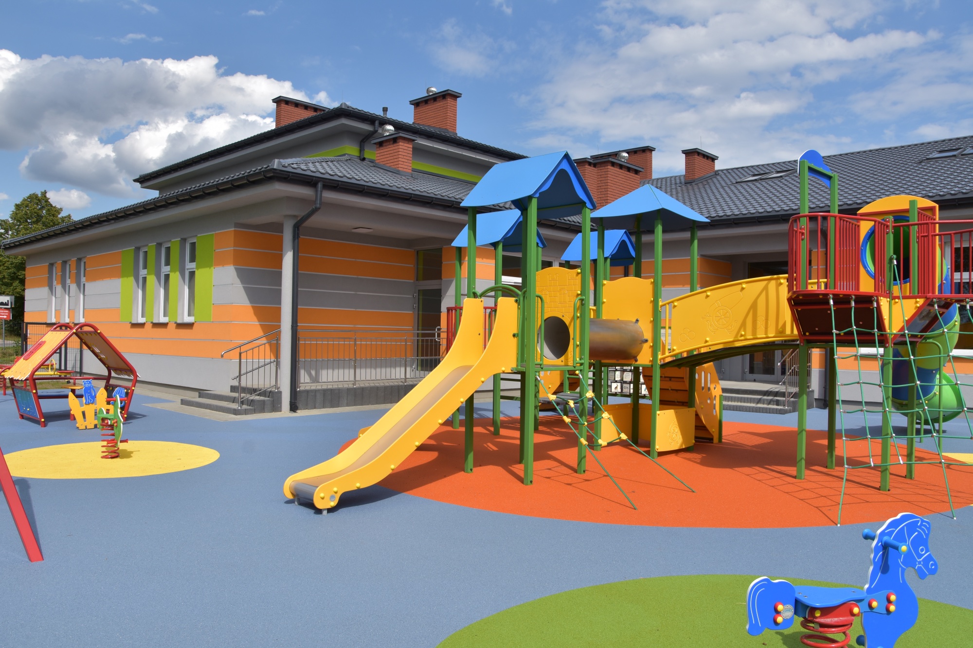 Wykonujemy, poczynając od projektu do oddania do użytku, place zabaw stosownie do potrzeb i posiadanych środków finansowych Zamawiającego. Są to zarówno małe obiekty składające się z jednego lub kilku urządzeń posadowionych na trawie, jak i duże place zabaw z nawierzchnią poliuretanową.