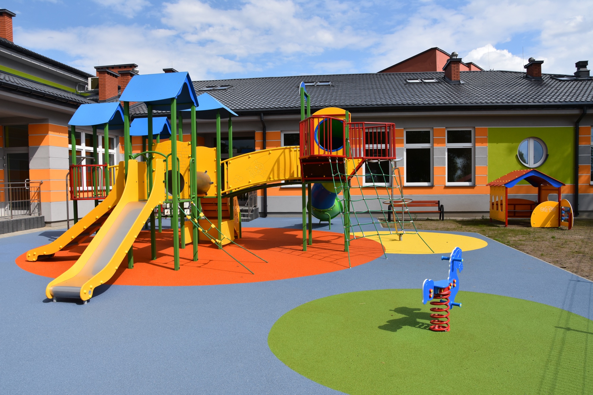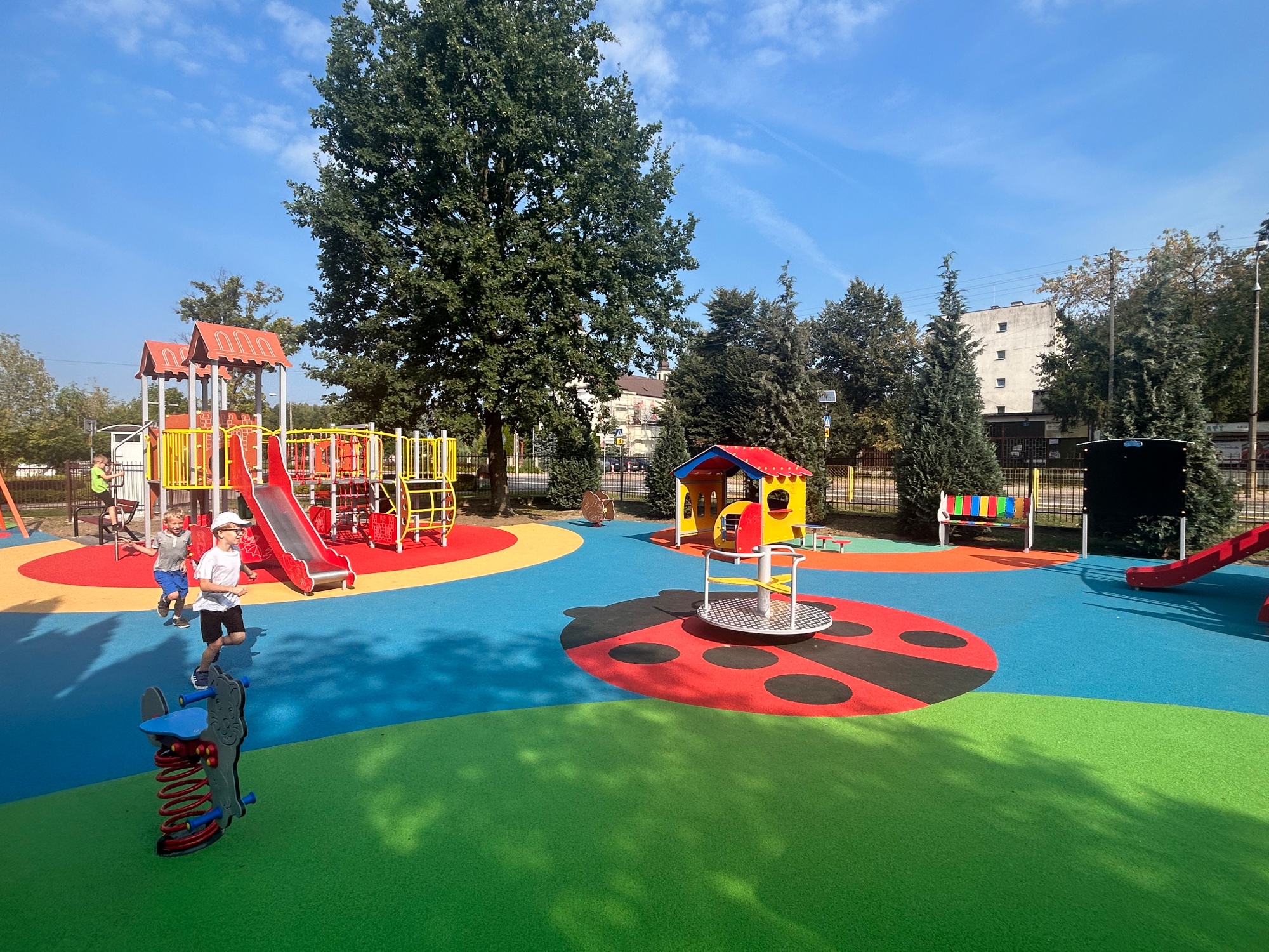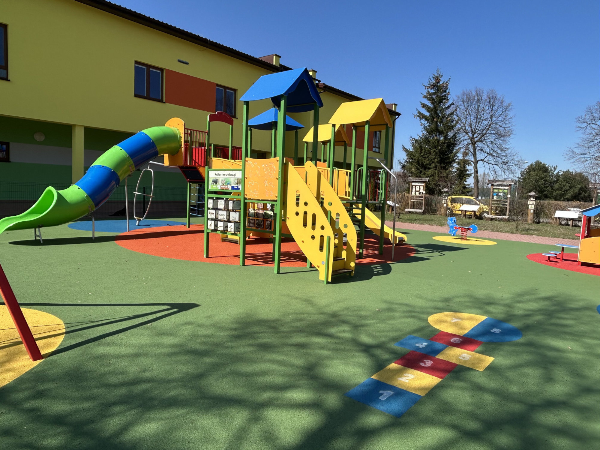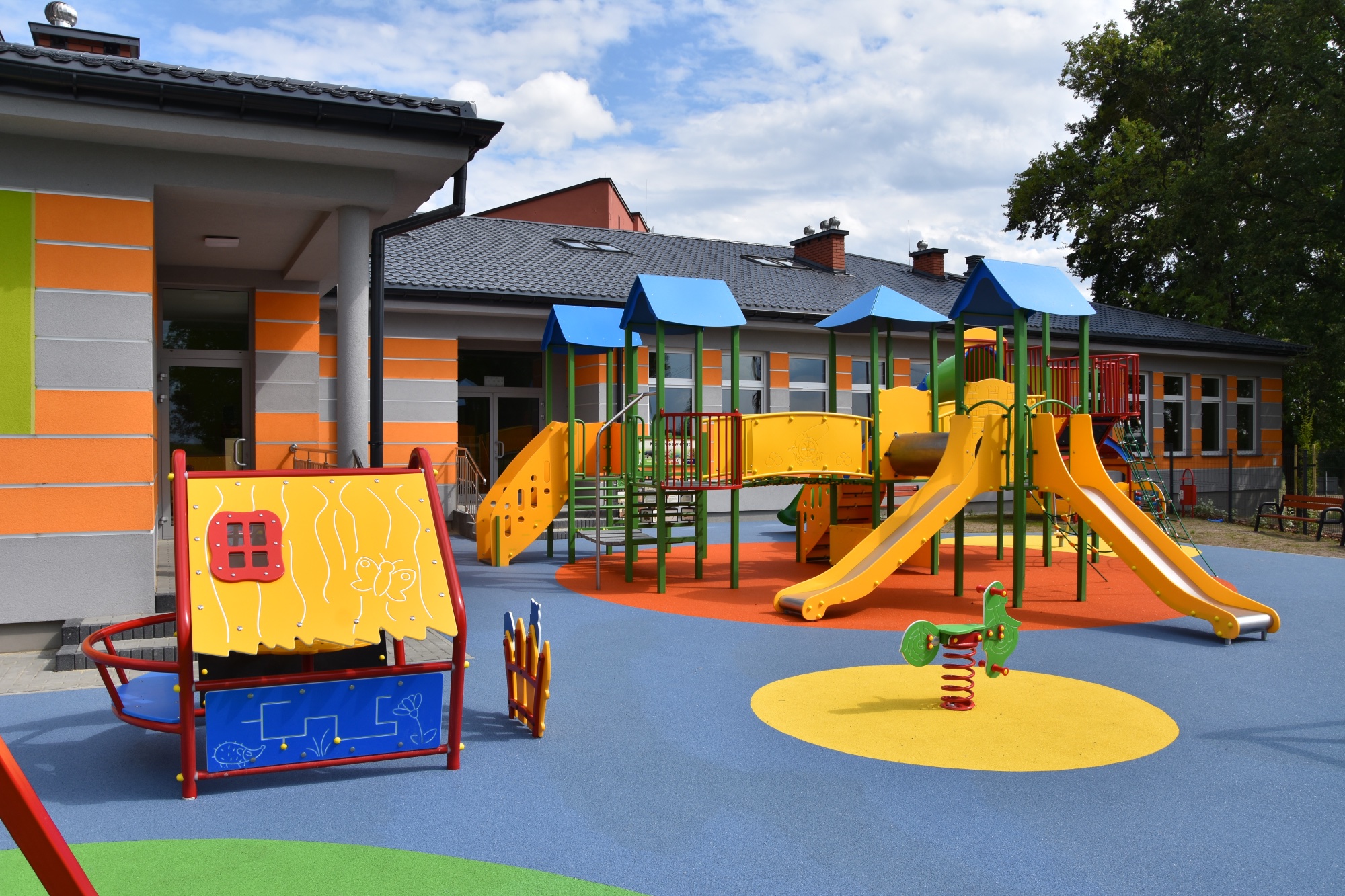 Wykonujemy, poczynając od projektu do oddania do użytku, place zabaw stosownie do potrzeb i posiadanych środków finansowych Zamawiającego. Są to zarówno małe obiekty składające się z jednego lub kilku urządzeń posadowionych na trawie, jak i duże place zabaw z nawierzchnią poliuretanową.