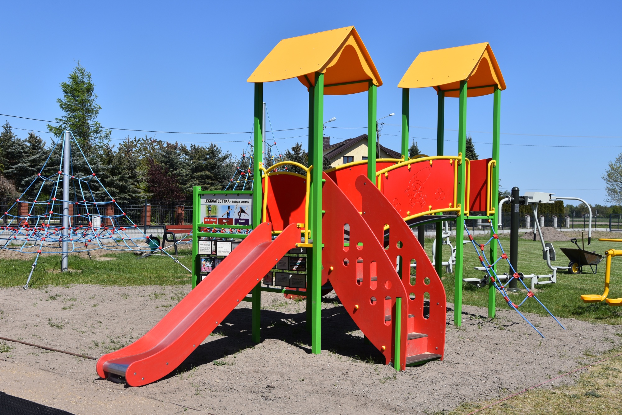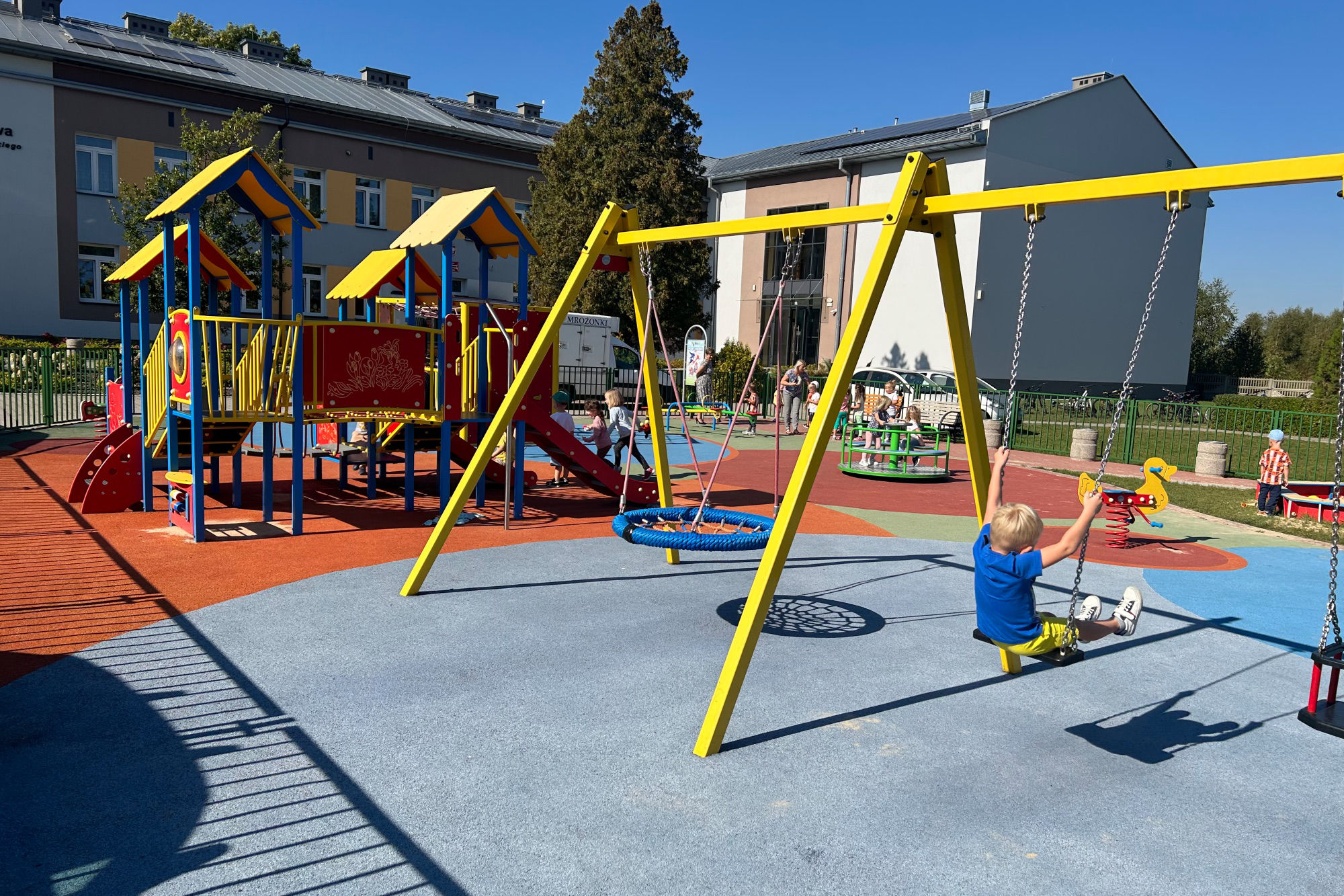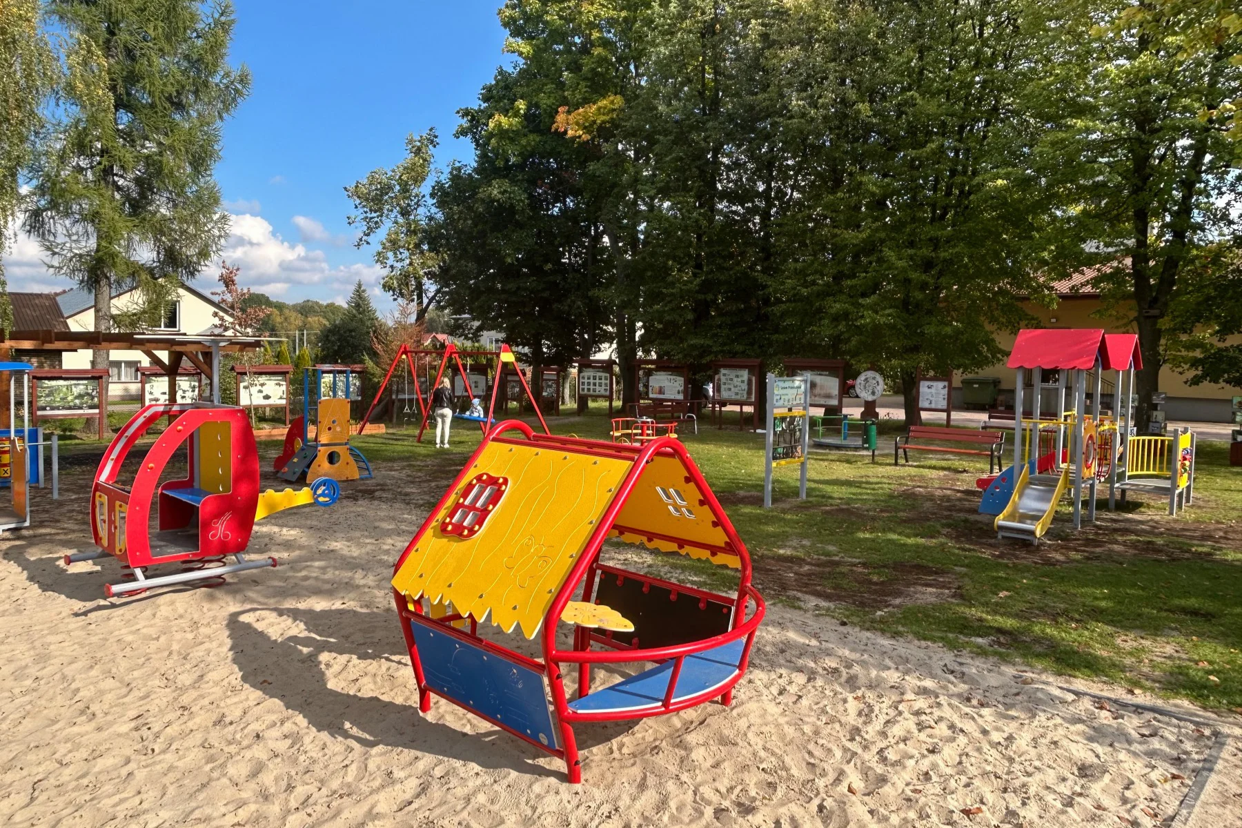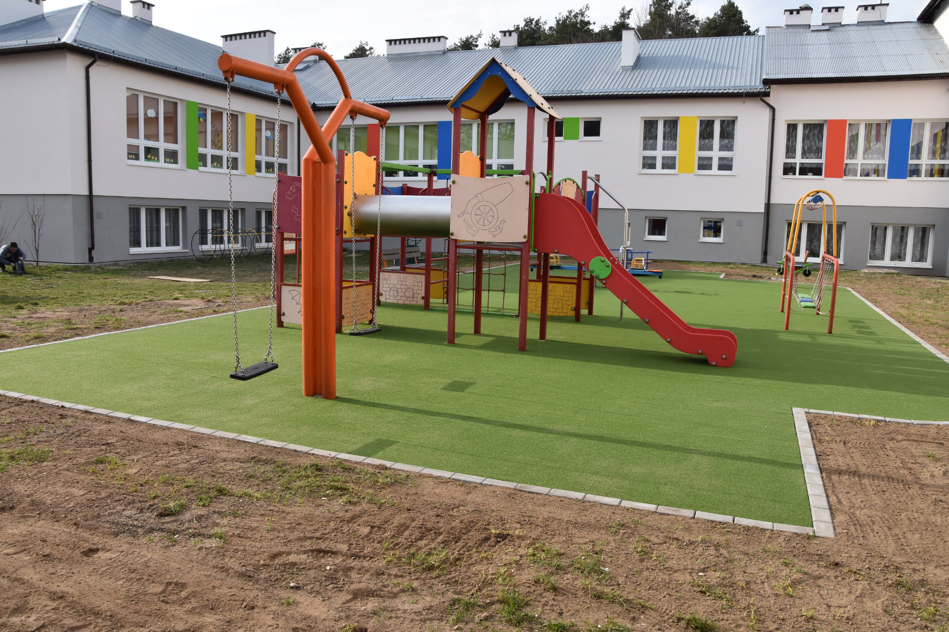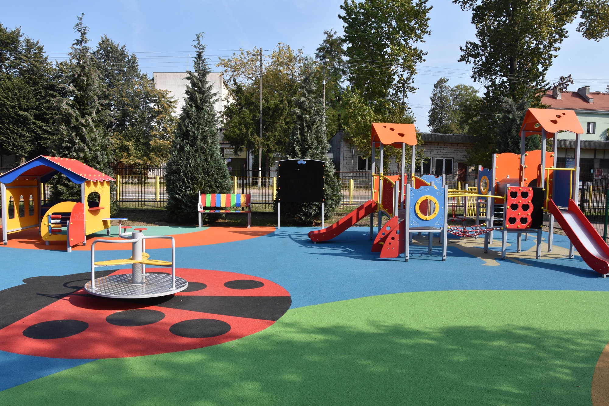 Wykonujemy, poczynając od projektu do oddania do użytku, place zabaw stosownie do potrzeb i posiadanych środków finansowych Zamawiającego. Są to zarówno małe obiekty składające się z jednego lub kilku urządzeń posadowionych na trawie, jak i duże place zabaw z nawierzchnią poliuretanową.