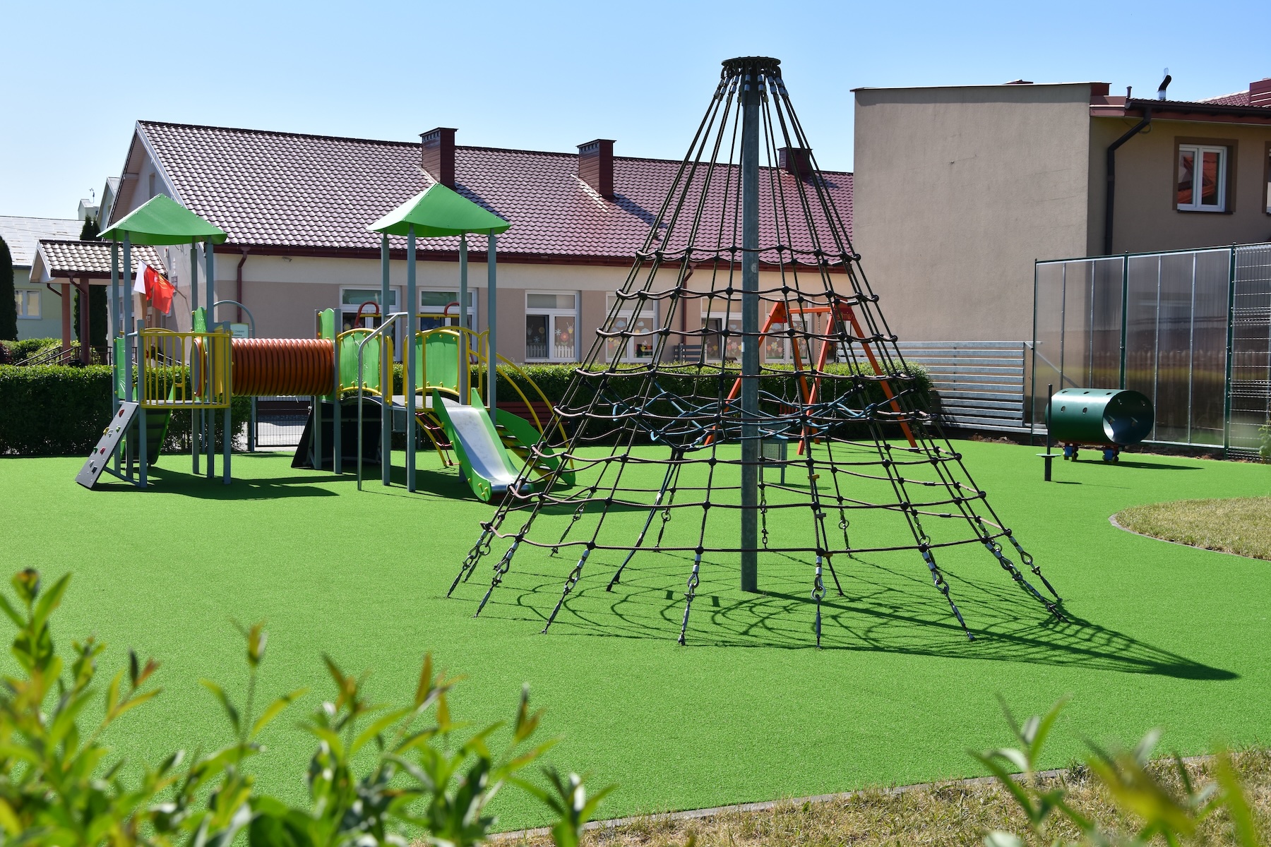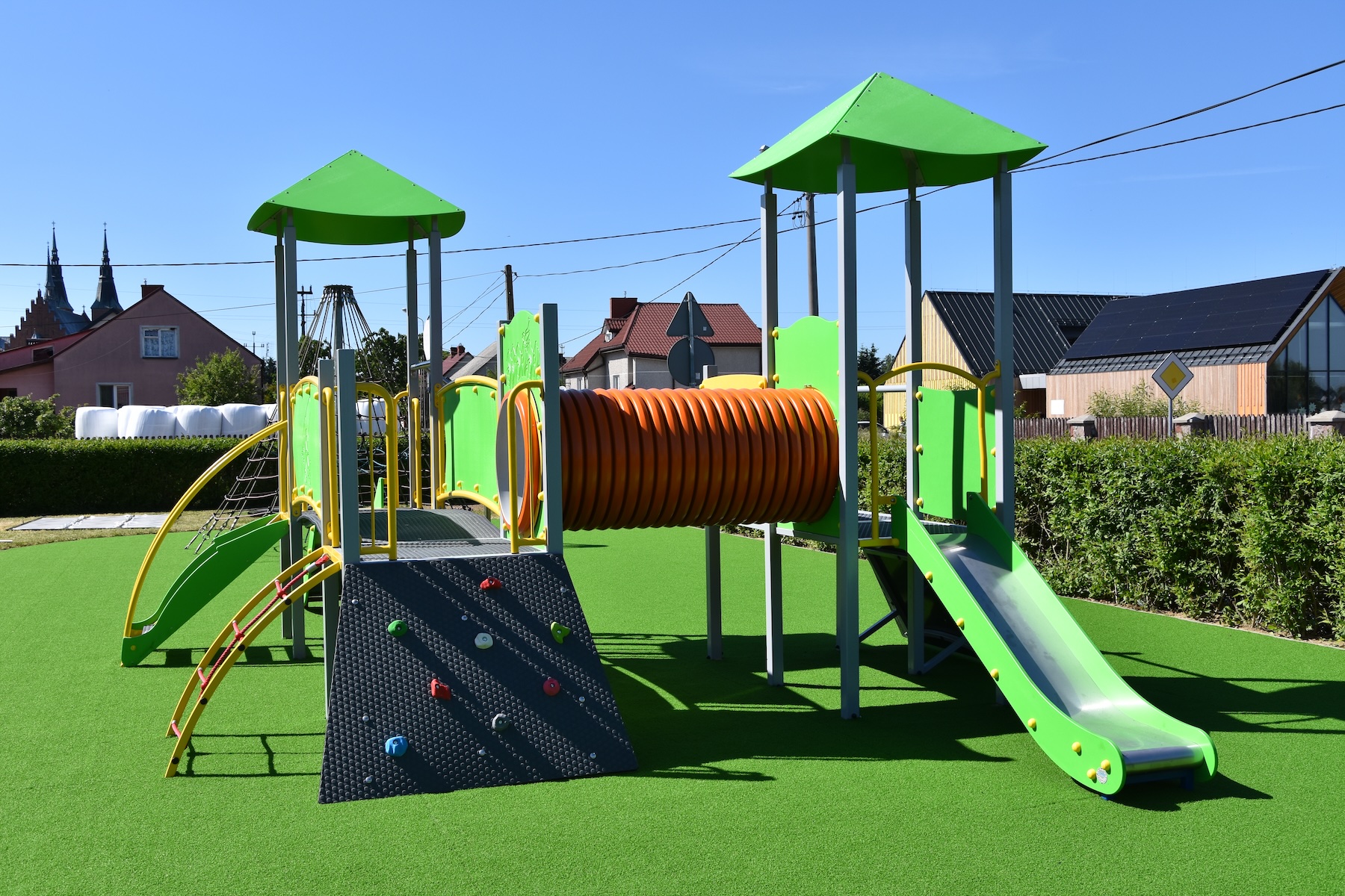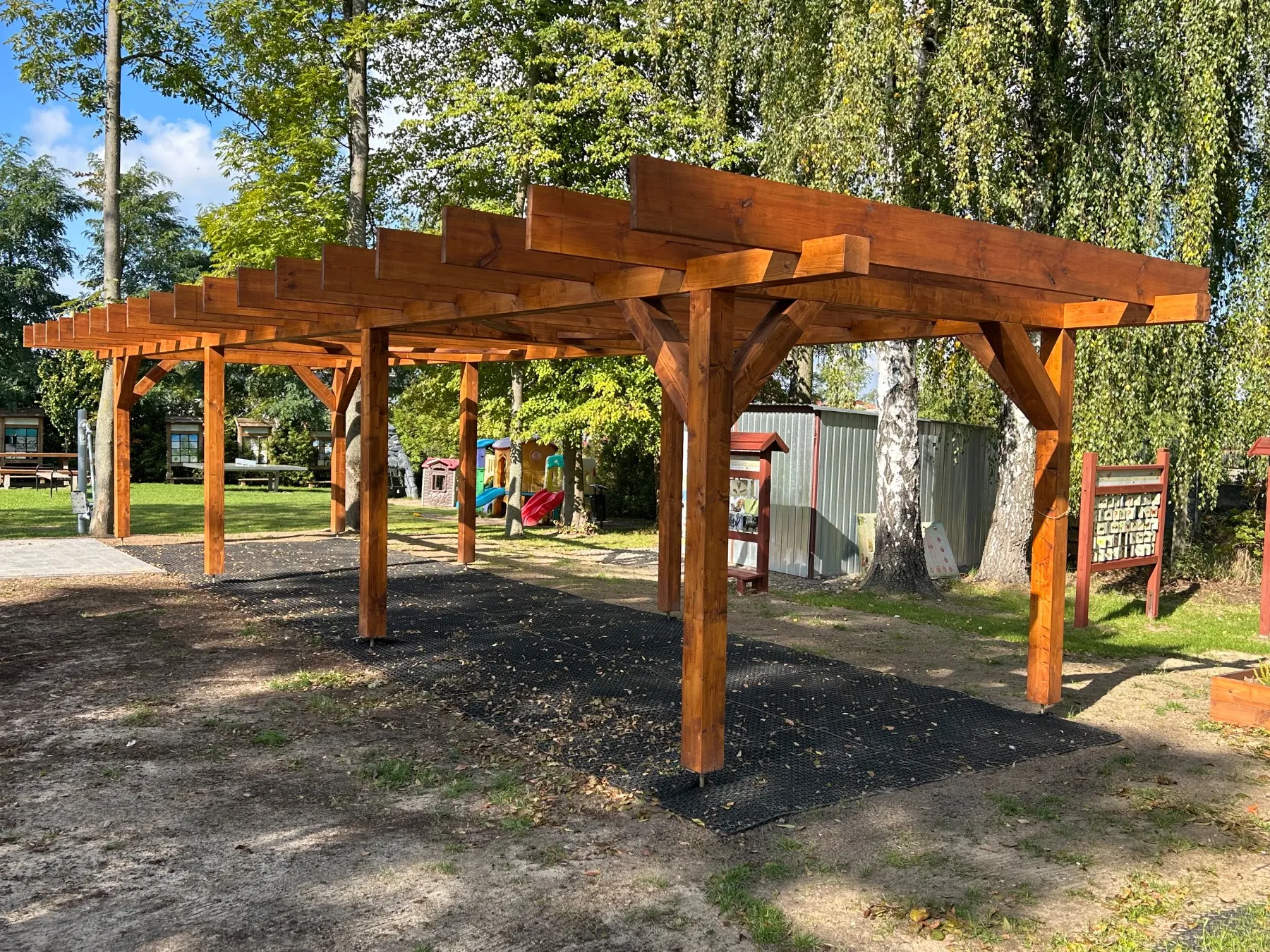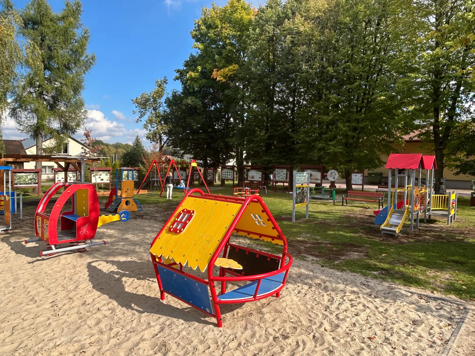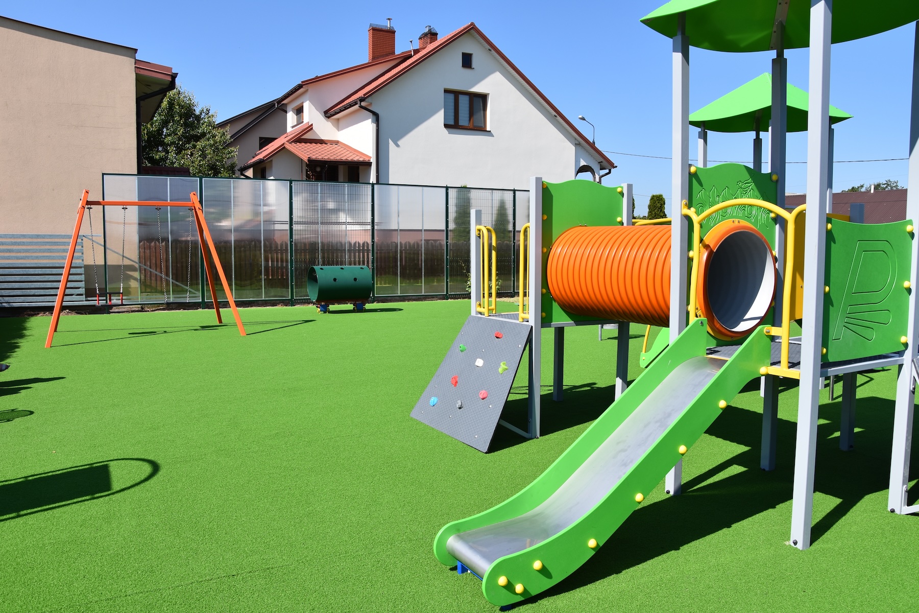 Wykonujemy, poczynając od projektu do oddania do użytku, place zabaw stosownie do potrzeb i posiadanych środków finansowych Zamawiającego. Są to zarówno małe obiekty składające się z jednego lub kilku urządzeń posadowionych na trawie, jak i duże place zabaw z nawierzchnią poliuretanową.