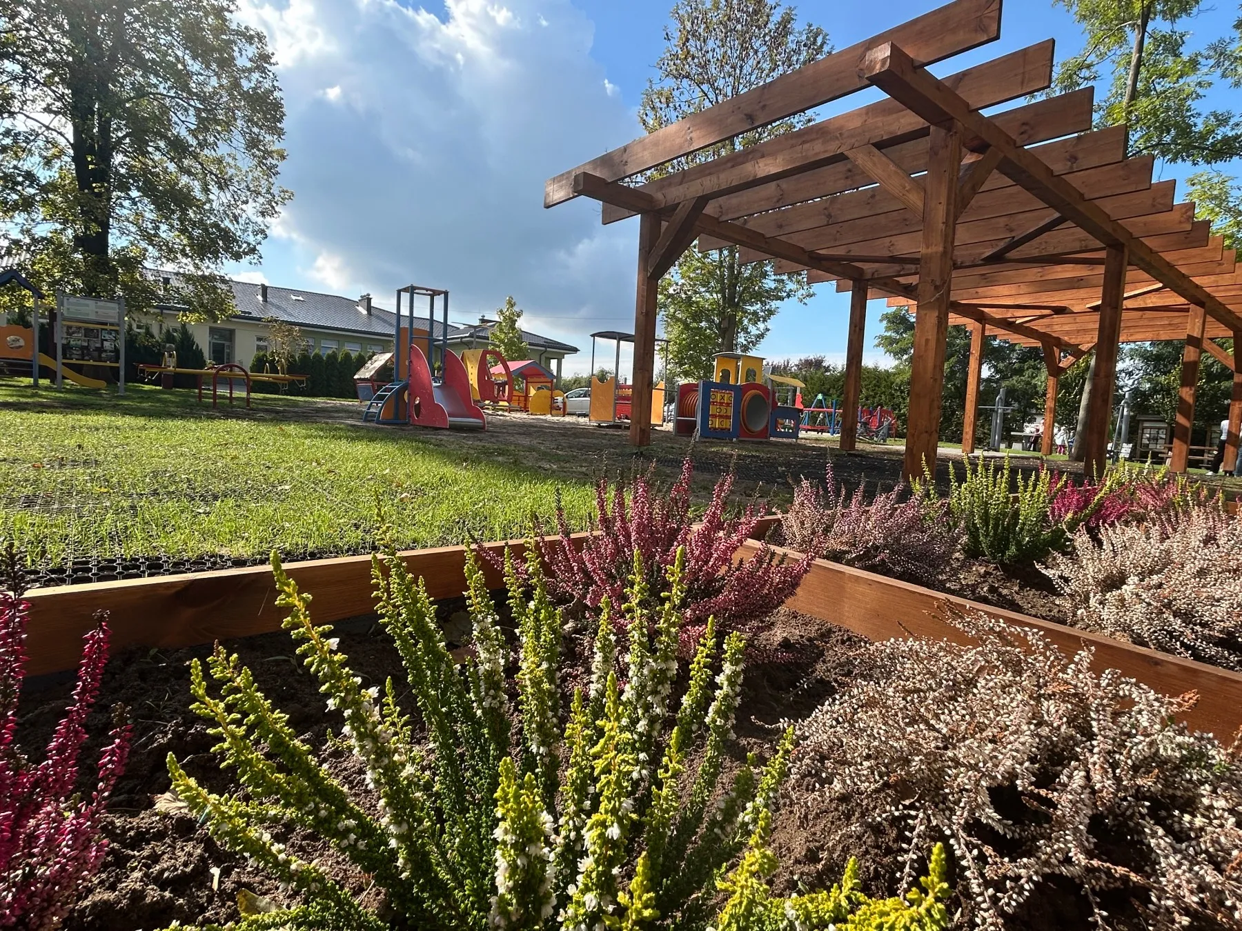 Wypełniając wymagania estetyczne, dobieramy kolory urządzeń, nawierzchni i elewacji budynków, nie pomijając istotnej roli nasadzeń ogrodniczych.